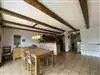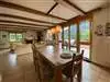 Partie jour :1 hall d’entrée de 7 m2 avec vestiaire et 1 réduit mène à 1 cuisine agencée (électroménager env. 5 ans) ouverte à 1 salon-salle à manger avec une belle cheminée en pierre le tout de 57,6 m2 avec une baie vitrée donnant accès sur 1 belle terrasse avec une vue dégagée.