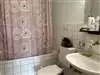 1 hall de distribution avec armoires murales de 3 m2 mène à 1 chambre de 13 m2 avec armoires murales, 1 salle de bain avec baignoire, wc et lavabo.