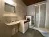1 hall de distribution mène à 1 chambre, 1 chambre, 1 salle d’eau avec douche, wc et lavabo avec machine à laver et à sécher, 1 cellier/cave avec étagère.