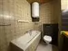 Partie jour : 1 hall de distribution avec armoire murale mène à 1 cuisine agencée semi-ouverte à 1 salon-salle à manger avec une cheminée en pierre et armoire murale.Partie nuit : 1 hall de distribution mène 1 chambre parents et 1 salle de bain avec baignoire, wc (récent) et double-lavabos avec boeler.