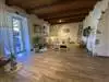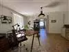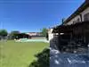 1 hall d’entrée avec vestiaire mène à 1 cuisine agencée ouverte a/coin repas et PF donnant accès à la terrasse couverte, 1 salon-salle à manger a/poêle à bois de 24,42 m2 a/PF donnant accès sur une belle terrasse couverte a/vue sur la piscine et vue dégagée sur le jardin, 1 séjour ou espace bureau de 12,2 m2, 1 salle de bain (récente) a/baignoire wc et meuble-lavabo a/machines à laver et à sécher.A l’étage :
