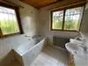 1 hall-sas de 2,3 m2, 1 hall de distribution de 5 m2 avec 1 poêle, 1 cuisine laboratoire de 6,9 m2 ouverte sur 1 coin à manger de 8,1 m2, 1 chambre-salle à manger de 17,1 m2 avec accès à 1 balcon, 1 chambre-salon de 10,9 m2. (Il est possible d’ouvrir les chambres et de n’en faire qu’une). 1 chambre à coucher de 16,7 m2, 1 salle de bain de 5,5 m2 avec baignoire et lavabo, 1 wc séparé.1er étage
