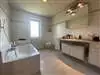1 vaste entrée de 15,7 m2 a/vestiaire mène à 1 cuisine agencée de 24,7 m2 avec coin repas et baie vitrée donnant accès à la terrasse couverte (véranda) de 14,2 m2, 1 salon/séjour de 16 m2 avec baie vitrée donnant accès à la terrasse couverte (véranda), (possibilité d’ouvrir l’espace à vivre), 1 cellier et 1 réduit.1 hall de distribution mène à 1 espace bureau/chambre de 9 m2, 1 belle salle d’eau (2015) de 4 m2 a/douche, wc et meuble-lavabo.