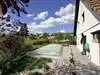 Magnifiques alentours bien arborés avec un coin verger et jardin, terrasse en bois et terrasse dallée donnant accès à 1 piscine chauffée par pompe à chaleur.