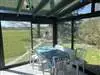 Un ombrage naturel donne de la fraicheur à une terrasse intimiste avec vue sur les champs.