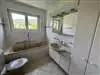 Studio avec entrée indépendante : 1 sas d’entrée de 1,3 m2 donne accès à 1 pièce de 13,9 m2, 1 hall de 3,9 m2 mène à 1 cuisinette de 3,9 m2 avec accès à 1 salle d’eau de 3,1 m2 avec douche, wc et lavabo.Habitation : 1 grand hall donne accès à 1 grand garage de 31,6 m2, 1 local chauffage de 8 m2 avec pompe à chaleur air-eau, 1 cave-abri de 11,3 m2.
