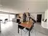 1 hall d’entrée de 7 m2 avec armoire-vestiaire mène à 1 magnifique cuisine agencée avec porte dérobée donnant accès à 1 économat de 5 m2. La cuisine est ouverte sur 1 lumineux salon-salle à manger, le tout de 69 m2 avec poêle et accès à la terrasse, 1 bureau de 10 m2, 1 salle d’eau de 3,4 m2 avec douche, wc et lavabo. Accès directe à 1 garage de 44,4 m2.1er étage