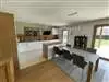 1 hall d’entrée mène à 1 cuisine agencée avec ilot et ouverte sur 1 salon-salle à manger, le tout d’env. 48 m2 avec poêle, baie vitrée et portes-fenêtres donnant accès à 1 terrasse, 1 chambre de 14,5 m2, 1 salle d’eau de 5,2 m2 avec douche italienne, wc et lavabo, 1 économat de 3,4 m2, 1 local technique-buanderie de 9,7 m2 avec chauffage par pompe à chaleur et avec accès à 1 cave de 6,5 m2 et 1 garage de 45 m2 avec porte automatique.1er étage