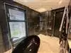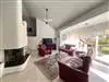 1 grande cuisine ouverte sur 1 salon-salle à manger avec cheminée et baies vitrées avec accès à 1 terrasse, quelques escaliers mène à un hall de distribution, 1 chambre avec dressing et accès à 1 magnifique salle de bain avec sauna, baignoire, douche italienne et double lavabo, 1 chambre, 1 wc-lavabo.Rez-de-chaussée inf.
